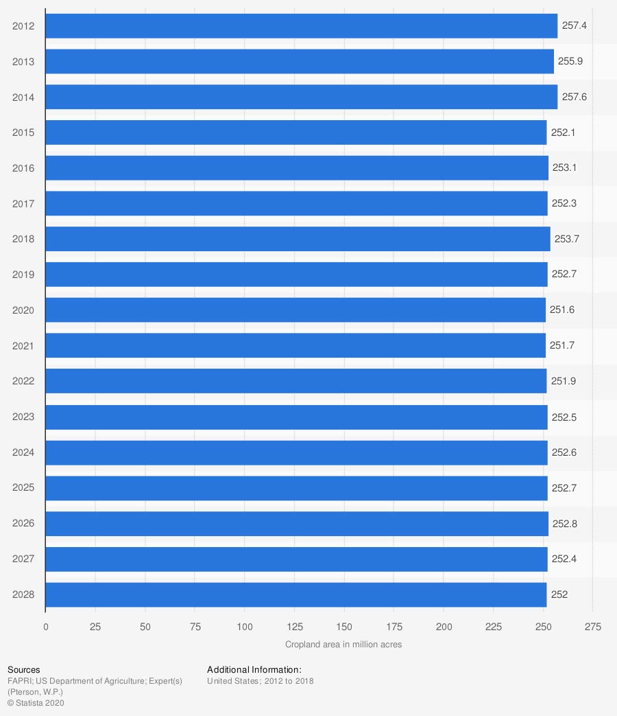 Graphic # 1: https://www.statista.com/statistics/201762/projection-for-total-us-cropland-area-from-2010/
