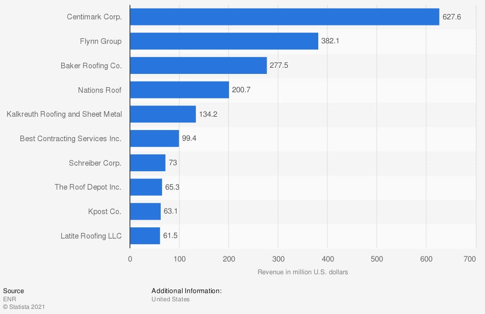 Graphic #1: https://www.statista.com/statistics/756436/leading-contractors-in-roofing-industry-by-revenue-us/