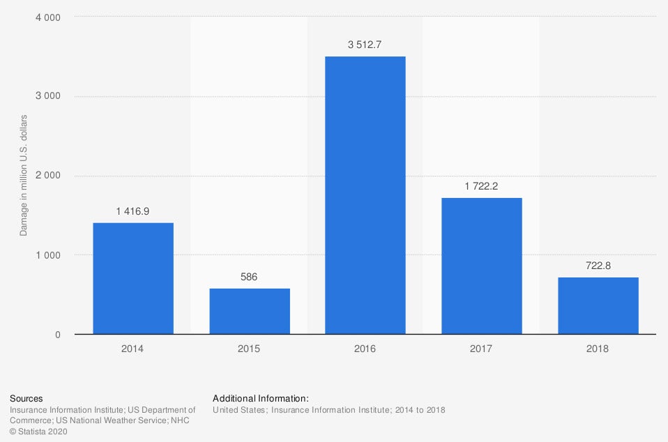 Graphic #1: https://www.statista.com/statistics/1015618/property-hail-damage-usa/