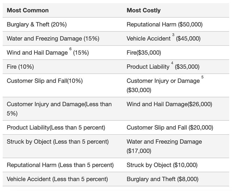When considering the importance of business income insurance, it’s helpful to know what kinds of claims all businesses file regularly. Check out some of the most common and costly claims for all businesses below.