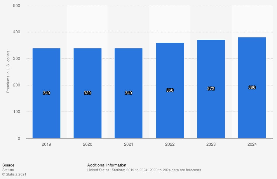 Graphic #2: https://www.statista.com/statistics/1119019/value-b2c-liability-insurance-premiums-written-usa/