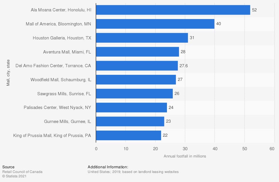 stats - https://www.statista.com/statistics/1197959/shopping-malls-annual-footfall-united-states/